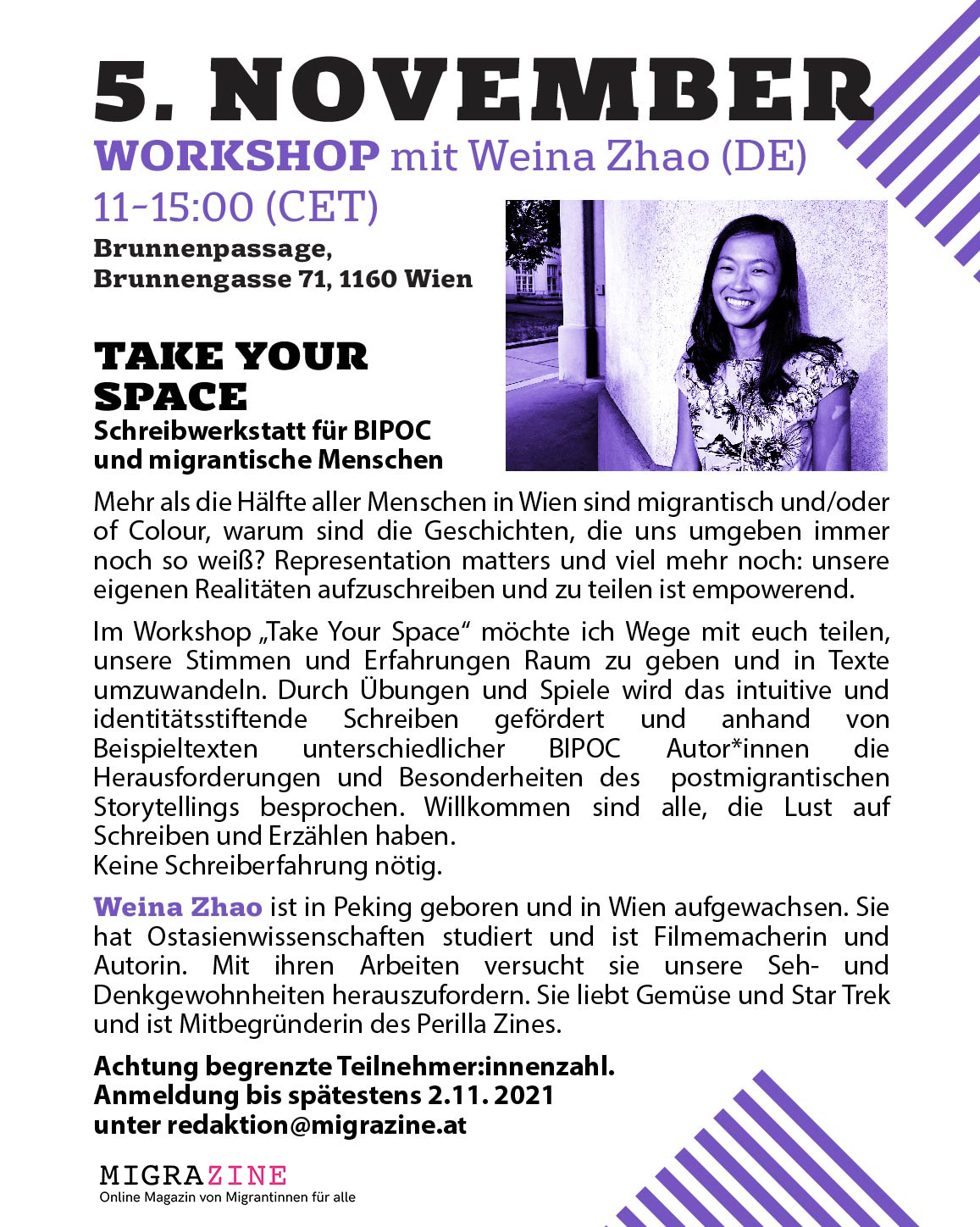 Die Informationen findet ihr im Anhang und auch unter dem folgenden Link: https://www.facebook.com/migrazine.at/